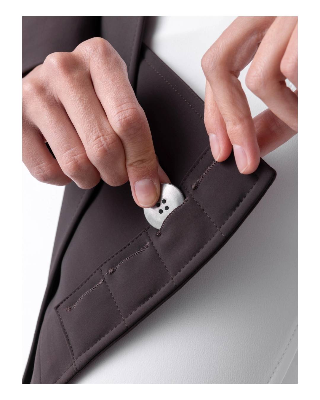 2. Cierre cruzado con botones de pedrería: Brilla en el campo con el cierre cruzado adornado con botones de pedrería.
