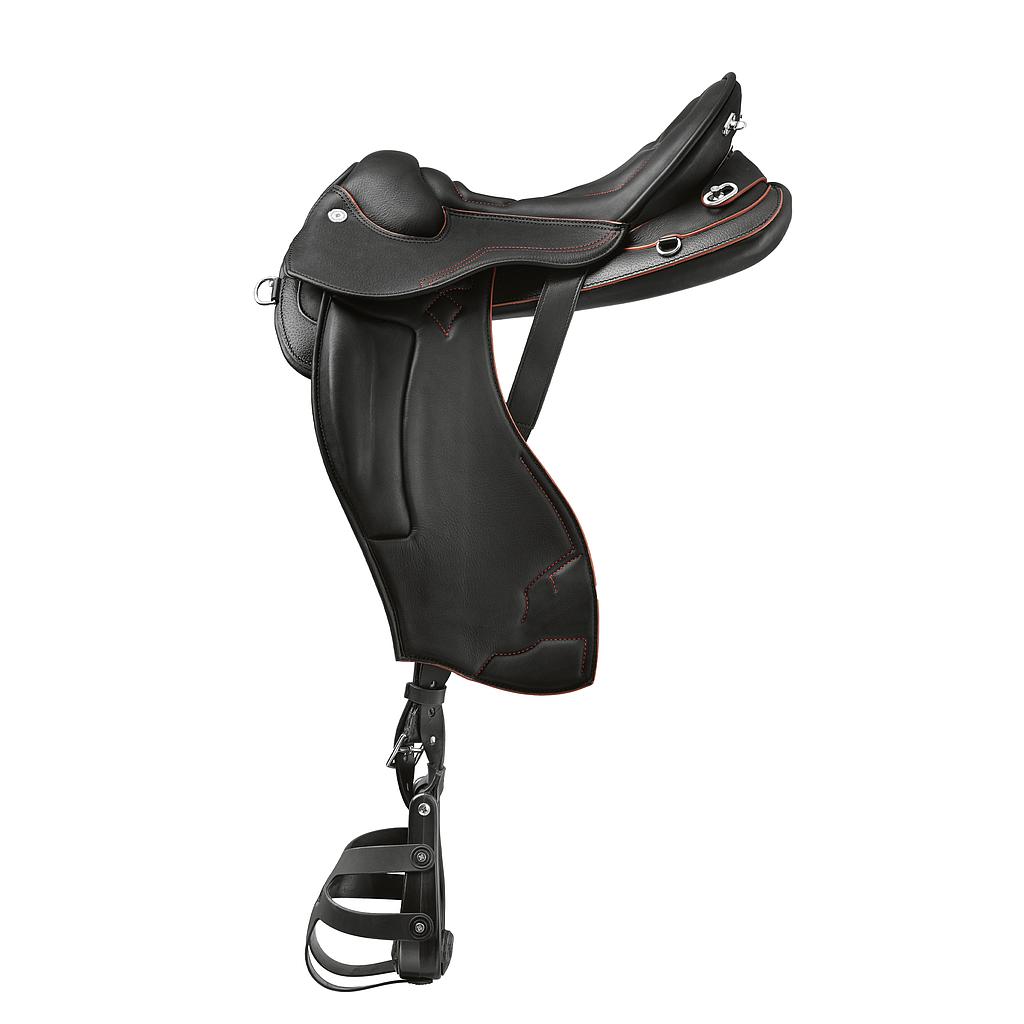 Su característica técnica más importante son los paneles flocados LPF, con un bolsillo especial para el flocado en la zona de los trapecios. Los paneles proporcionan una superficie más amplia para garantizar una adaptabilidad óptima a diferentes complexiones de caballo. Esta versión incluye un guardabarros con estribos y jaula de seguridad. Se puede solicitar un cuerno opcional.
